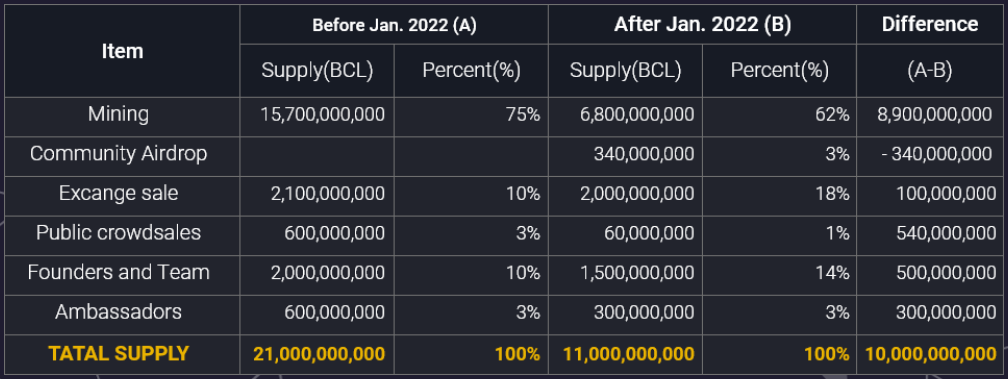 Community airDrop: 34,000,000BCL