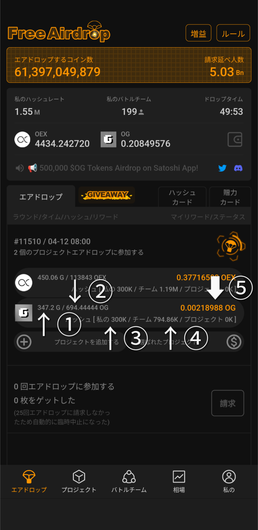 - ⑤現ラウンドで獲得できるuserのAirdrop量