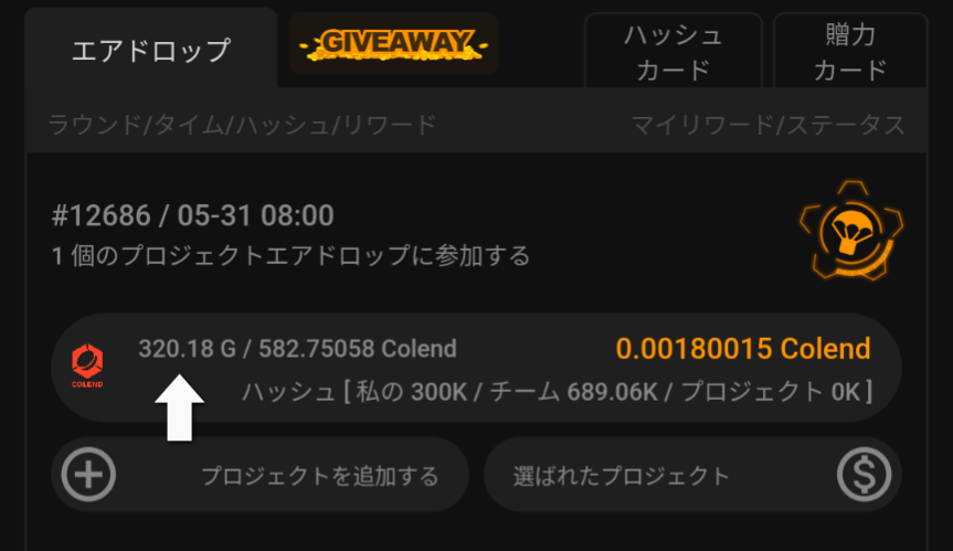 - ②現ラウンド(1h)のAirdrop配布量