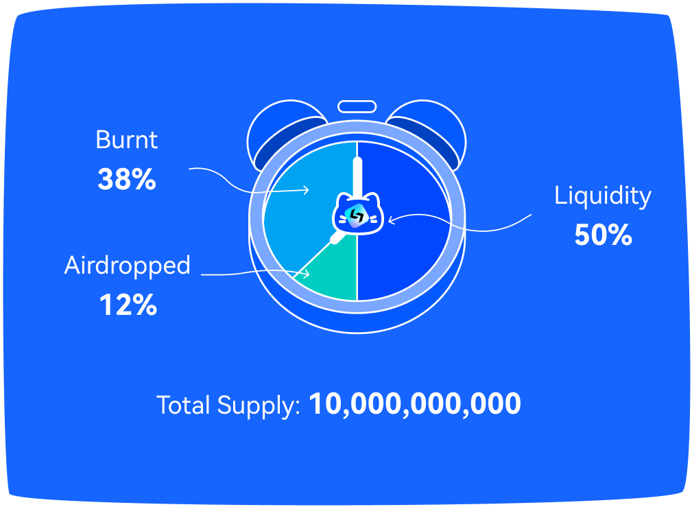 とはいえ、このTotal SupplyとDistributionをご覧いただければわかる通り、Devの保有する$MOEWはすべてBurn済みの為、0です。総発行数の50%で流動性を組み、初期エアドロップで12%を広く分散化して、残った38%を上で述べた通りすべてdeadアドレスに送ってBurnしています。