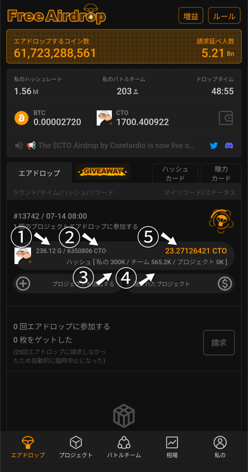 ②現ラウンド(1H)のAirdrop配布量