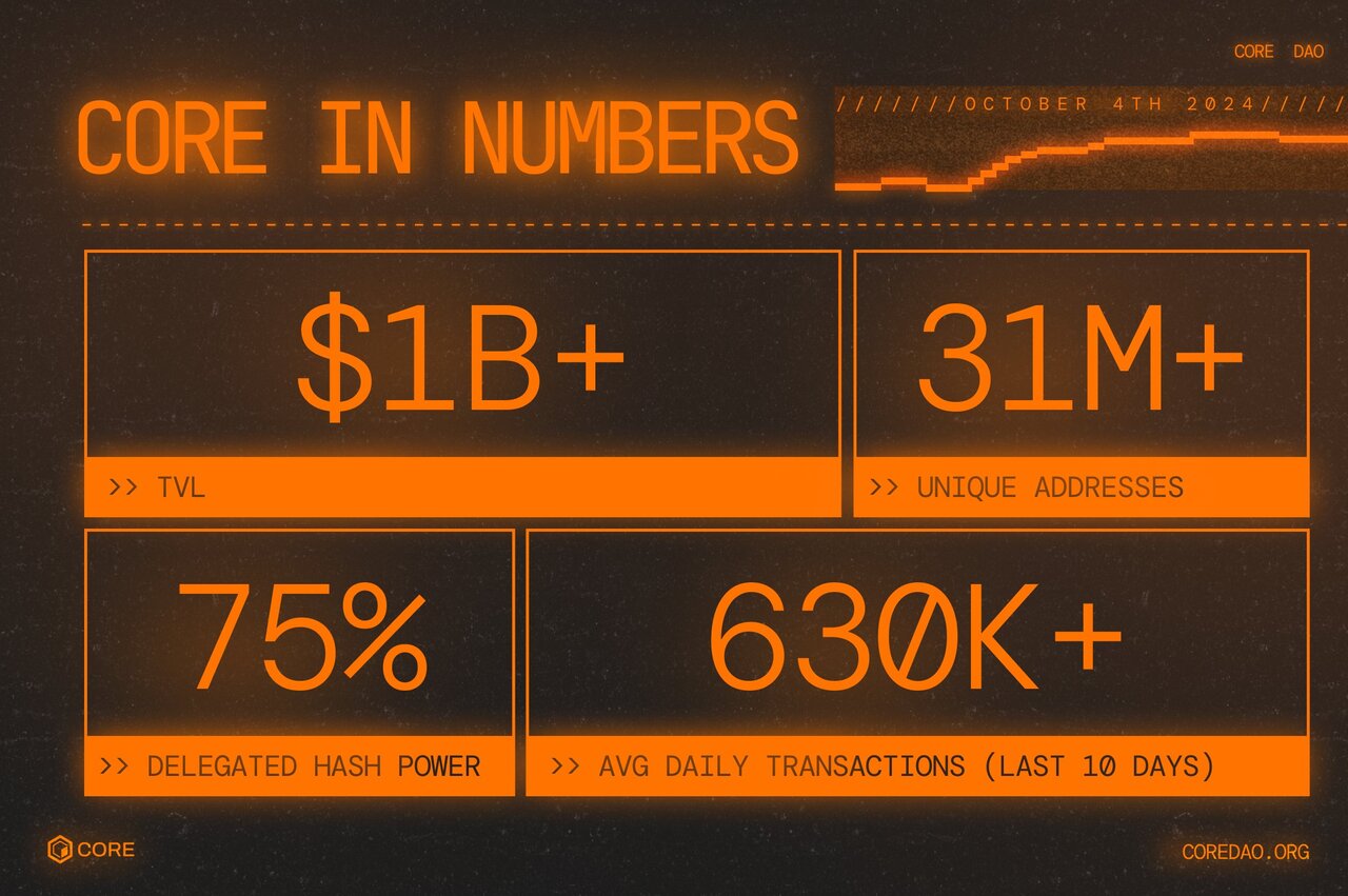 これらの指標は、Coreがユーザーや開発者に受け入れられつつあり、特にBitcoin保有者にとって魅力的なプラットフォームとなっていることを示します。また、高速なブロックタイムと低トランザクション手数料も、採用を後押しする要因です。