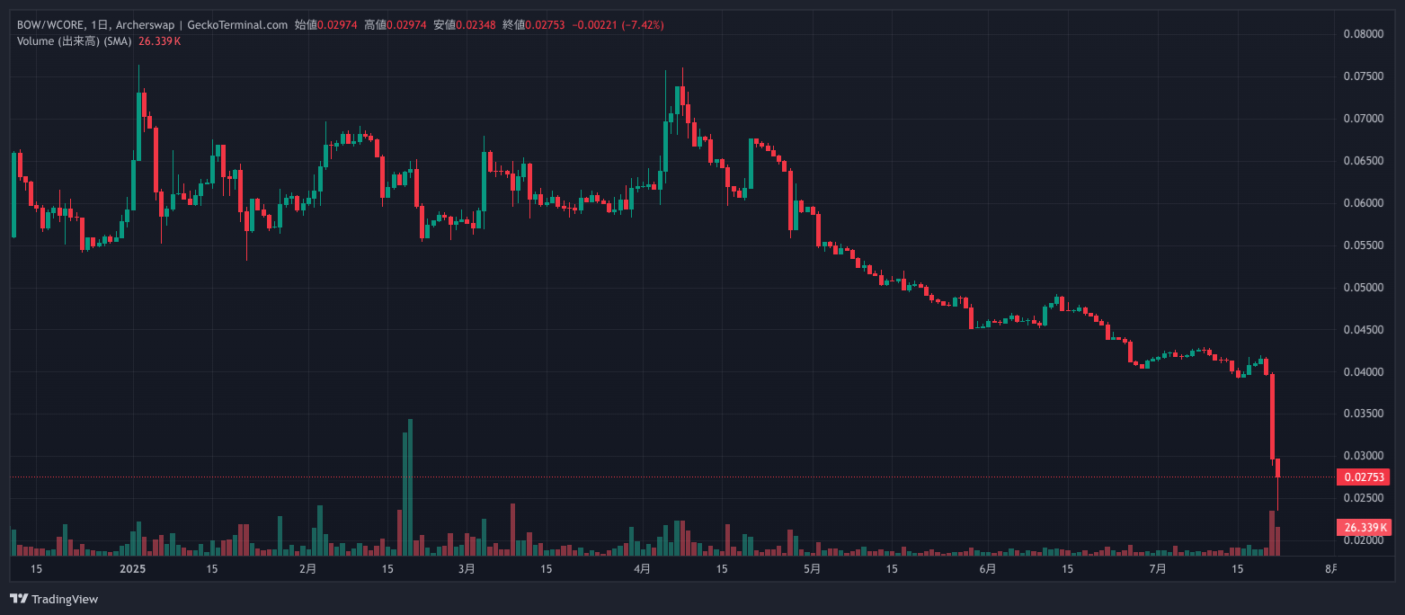 $BOWトークンは、そのCoreエコシステムの中核をなすDEXであるArcherSwapのユーティリティおよびガバナンストークンです。DEXトークンは、そのプラットフォームの利用が活発になればなるほど、手数料収入の分配やガバナンスへの参加といった形で、その価値を高める傾向にあります。FUDによって一時的に価格が下落したとしても、ArcherSwapのファンダメンタルズが変わらず、Coreチェーン全体の成長が続けば、$BOWトークンも最終的にはその真価を取り戻し、以前の対$COREレシオまで回復する可能性は十分にあります。