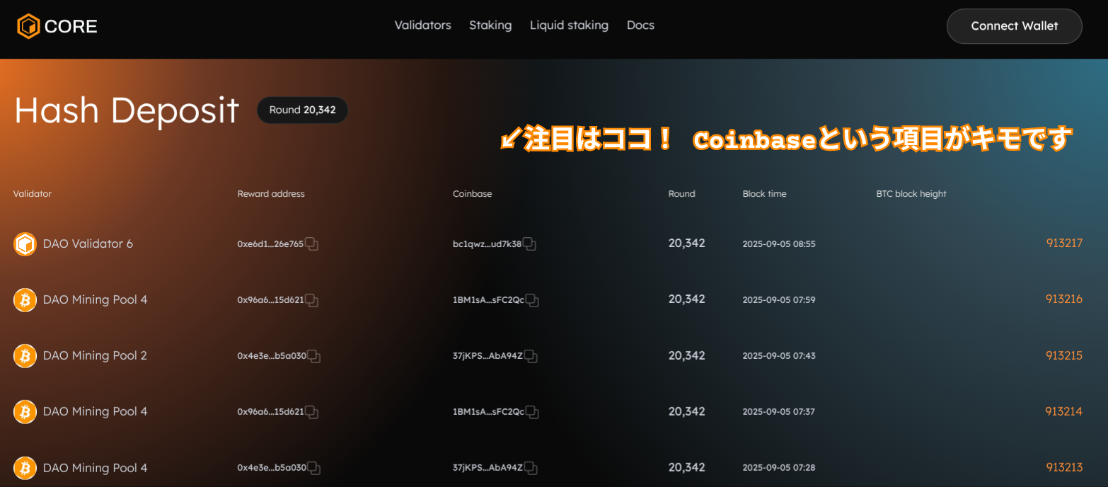 CoreDAOがBitcoinマイナーと密接に関わっている最も重要な証拠が、Core_figure04の図表にあります。